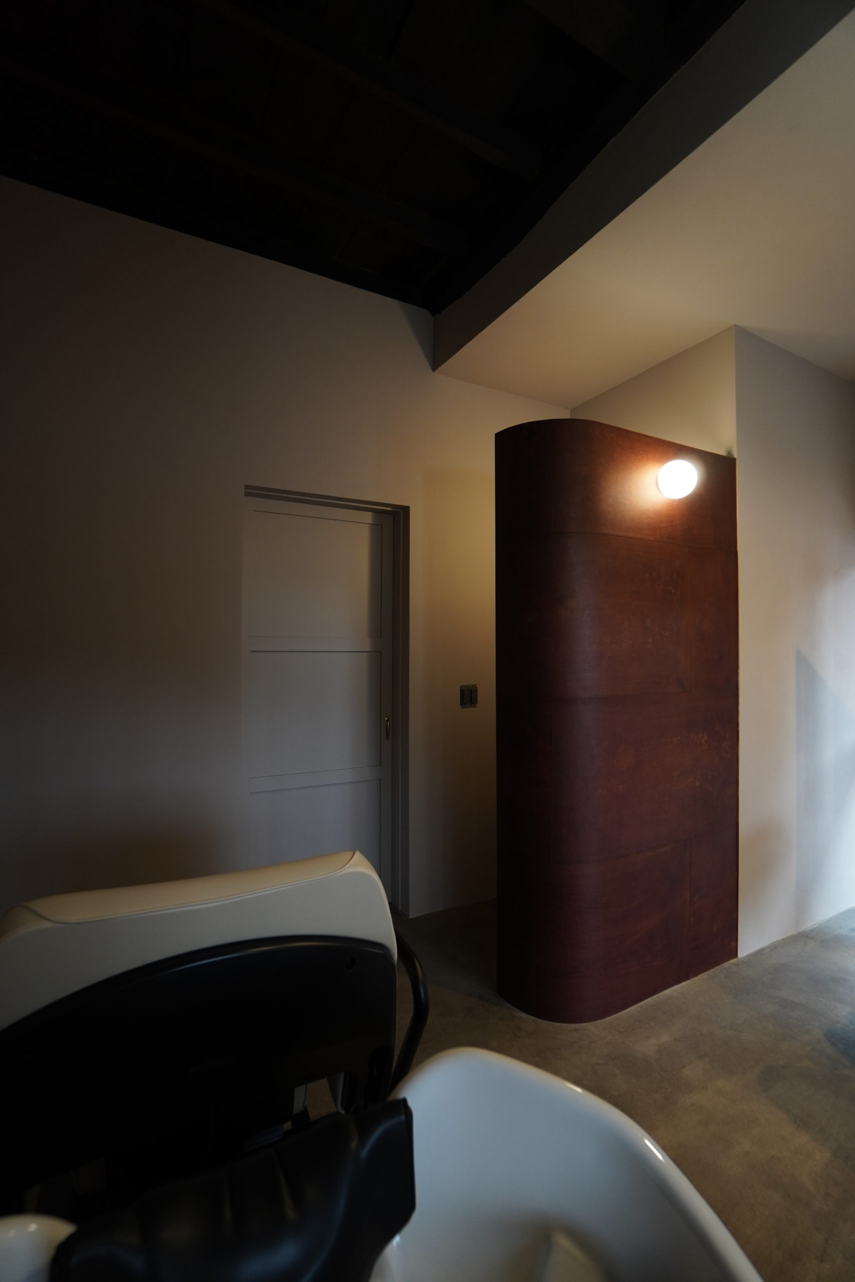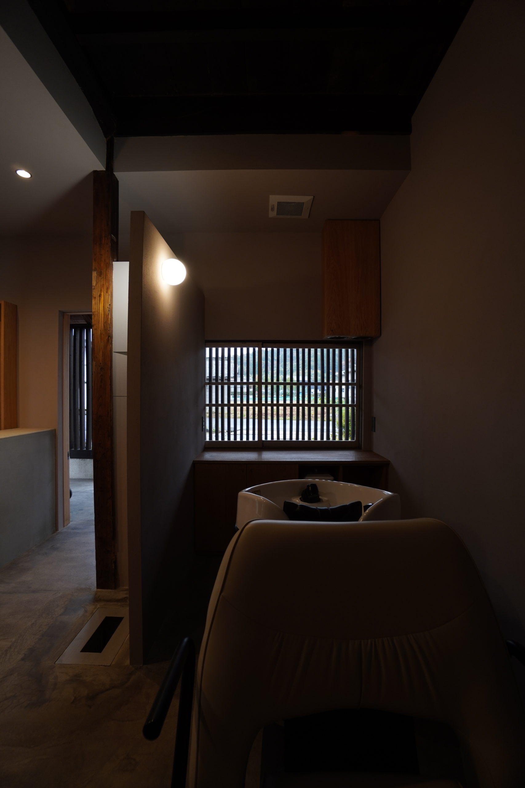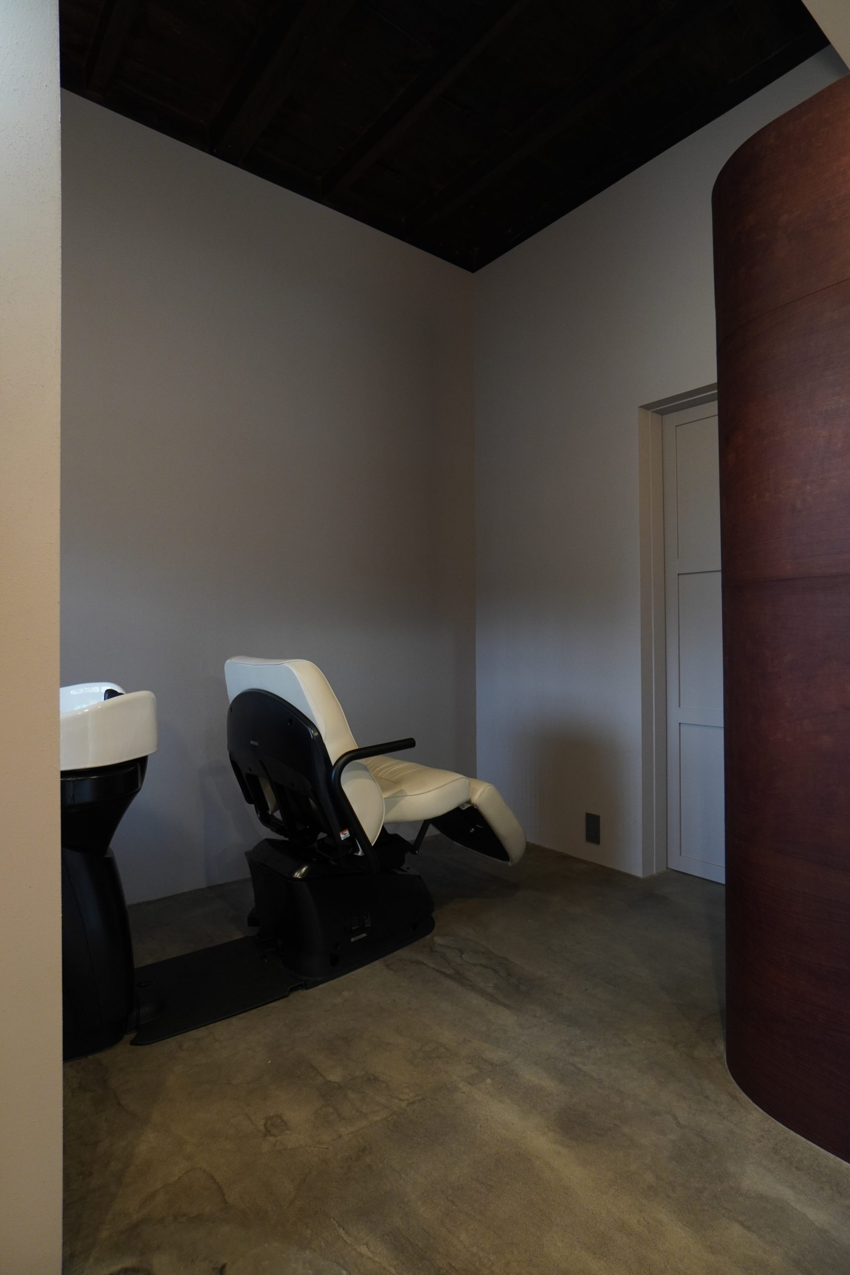 もともと物置になっていた古民家の一角の11㎡足らずの空間に設けられた、セット面が1面のみのプライベートヘアサロン。